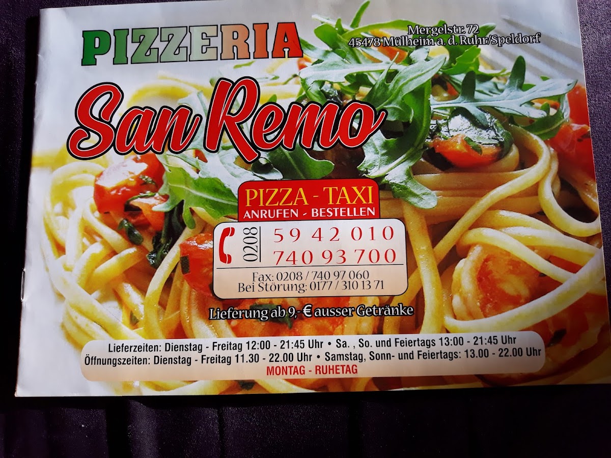 “ Egal, was wir bisher dort bestellt haben, es war alles perfekt und das Preis-/ Leistungsverhältnis ist sehr gut. Das Personal ist immer freundlich, egal, ob mein Mann das Essen holt oder es gebracht wird. Die Pizzen, Salate, Pommes, Schnitzel etc. alles schmeckt gut und frisch, auch der Salat ist knackig und köstlich. Darum ist die Pizzeria San Remo unser Haus- und Hoflieferant! ”